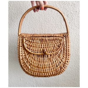 バッグは存在感ある大きさに半月型がかわいいラタンバスケット、