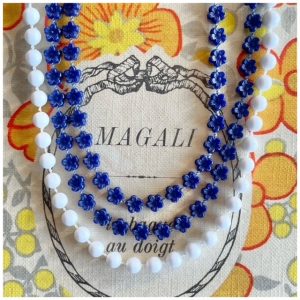 縦ライン効果を演出してくれるロングネックレスは3連のかわいい子ちゃんです♡