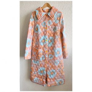 アプリコットカラーが春らしいロングキルティングガウンを羽織って♪