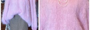 毛足の長いふっわふわモヘアのペールピンクカラーがフェミニンなオーバーニットに
