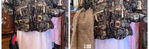 フリルやピンクの甘めヴィンテージを、シルクの総柄ブルゾンで