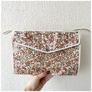 バッグは小花柄のクラッチバッグでブラウン系でまとめました◎