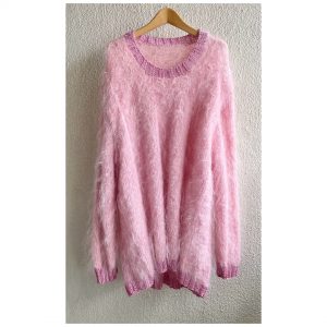 毛足の長いふっわふわモヘアのペールピンクカラーがフェミニンなオーバーニットに
