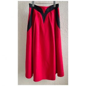 黒のアクセントがクールなレッドスカートの甘辛コーデ♪