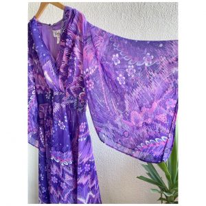 ドレッシーなキモノスリーブのロングワンピースを、もこもこエコファーの