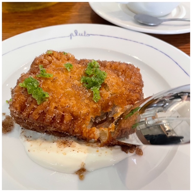 カリカリのパンと中のとろとろのチーズのハーモニーが最高でした♡とれあびん。