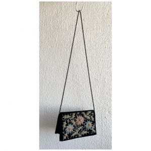 Vネック+Iラインですっきりとまとめて、刺繍ポシェットをポイントにしました◎