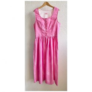 スカートとして合わせたのは、華やかローズピンクのチロリアンワンピース。