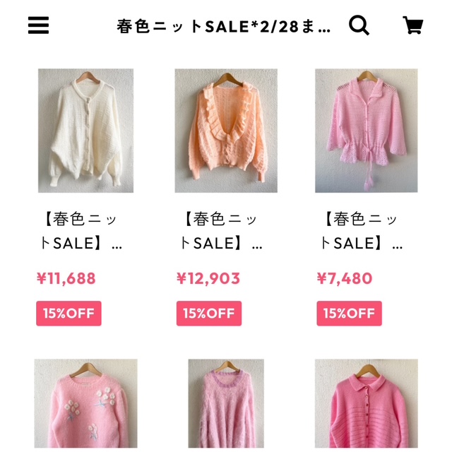 ちなみに春色ニットSALEも開催してます。こちらは2/28までです。